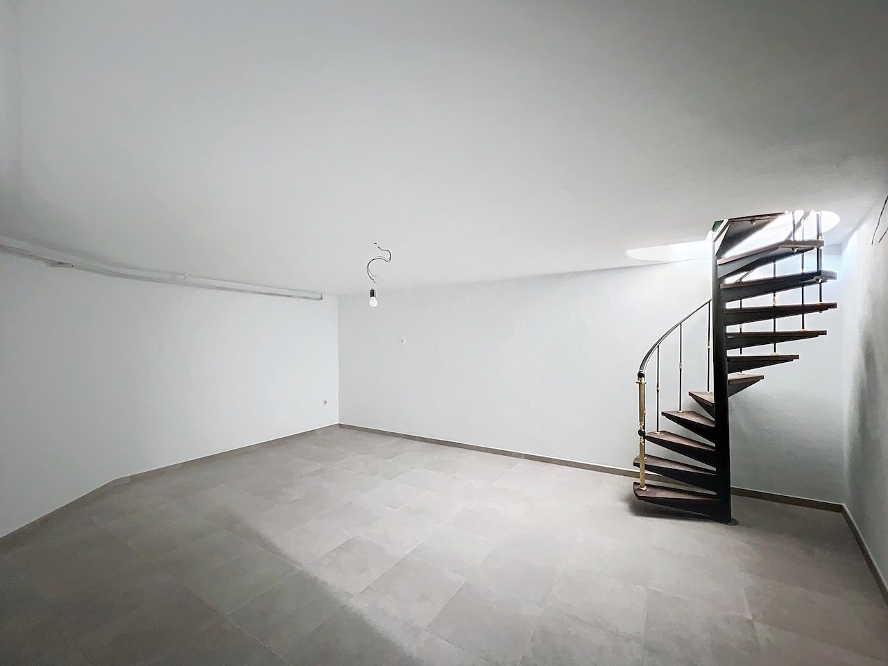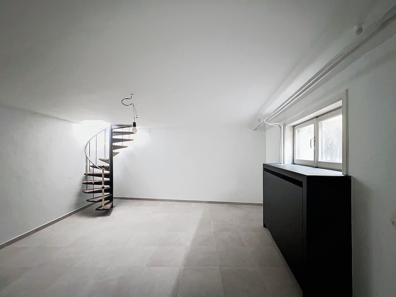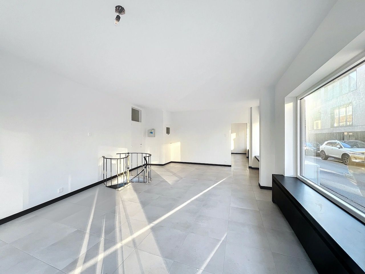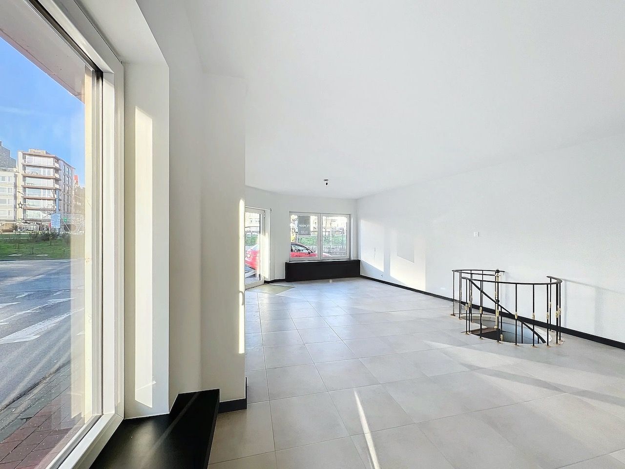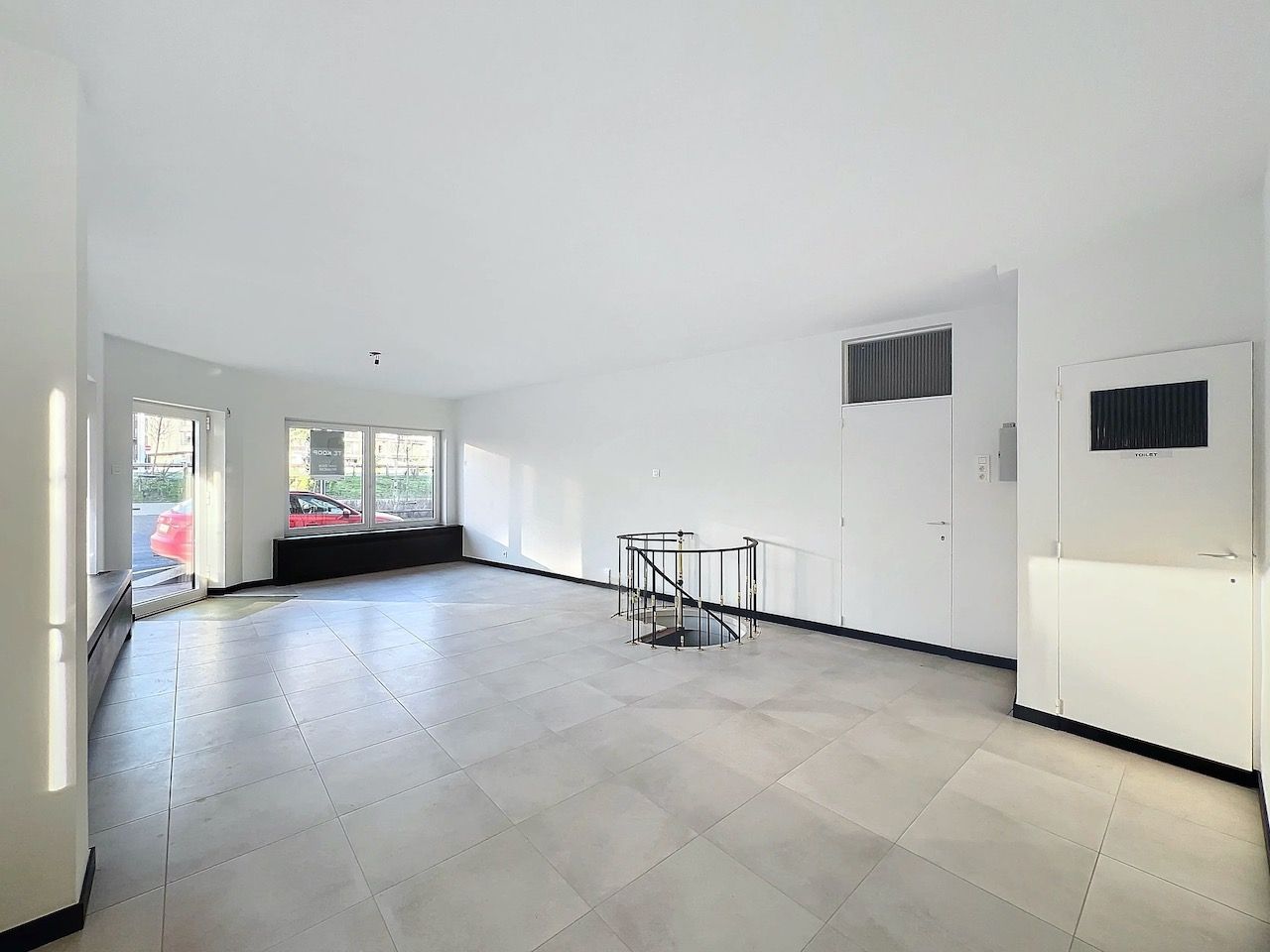 Handelsruimte bestaande uit: open ruimte met een trap die leidt naar de afgewerkte kelder - apart toilet - bureauruimte met aansluitende berg- of keukenruimte met cv installatie.