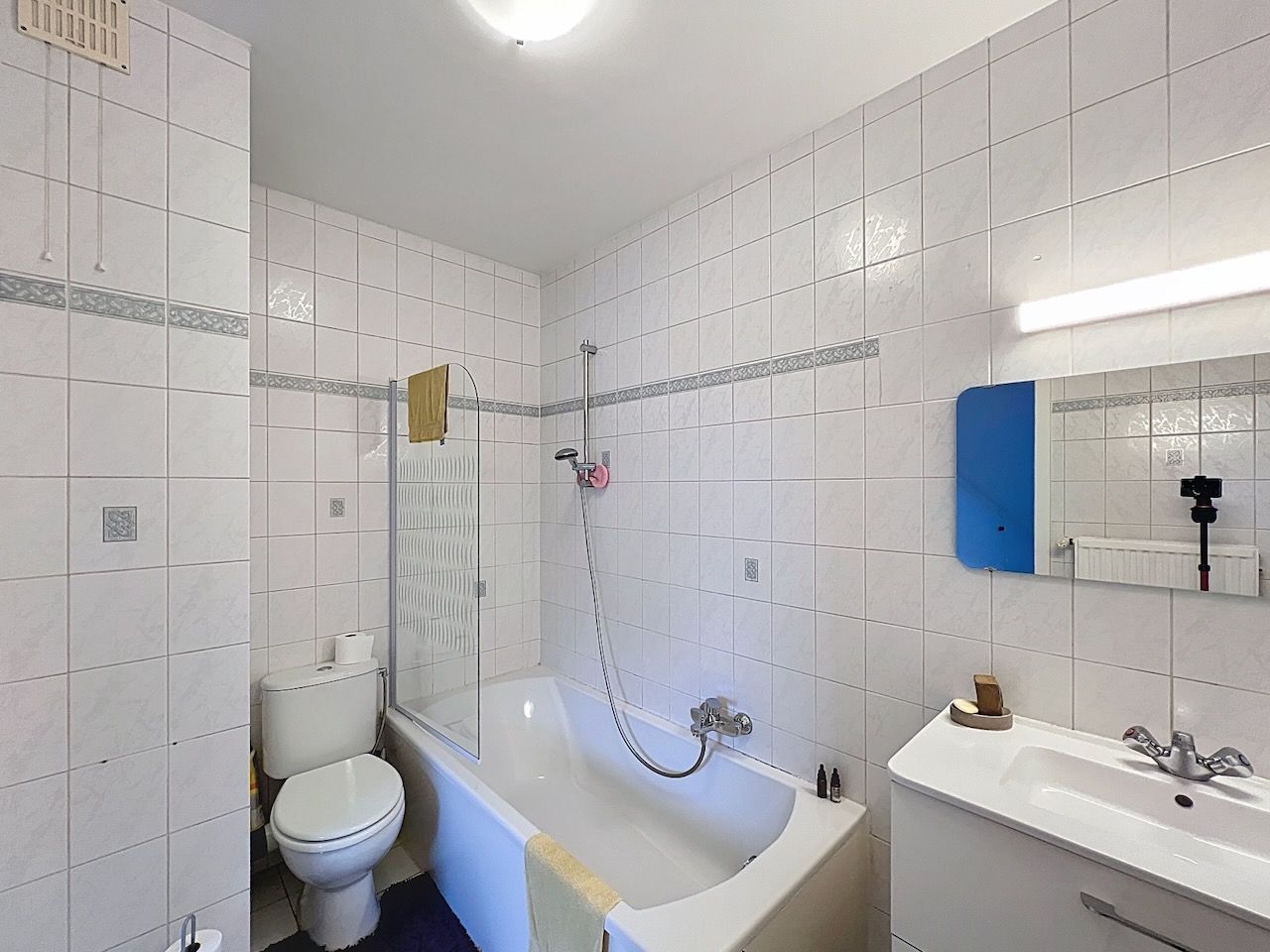 woonkamer – open keuken (de koelkast dient door de huurder zelf voorzien te worden) – badkamer met ligbad en douchescherm, lavabo en toilet – slaaphoek met ingemaakte kasten – private kelder – cv op gas – geen huisdieren toegelaten.