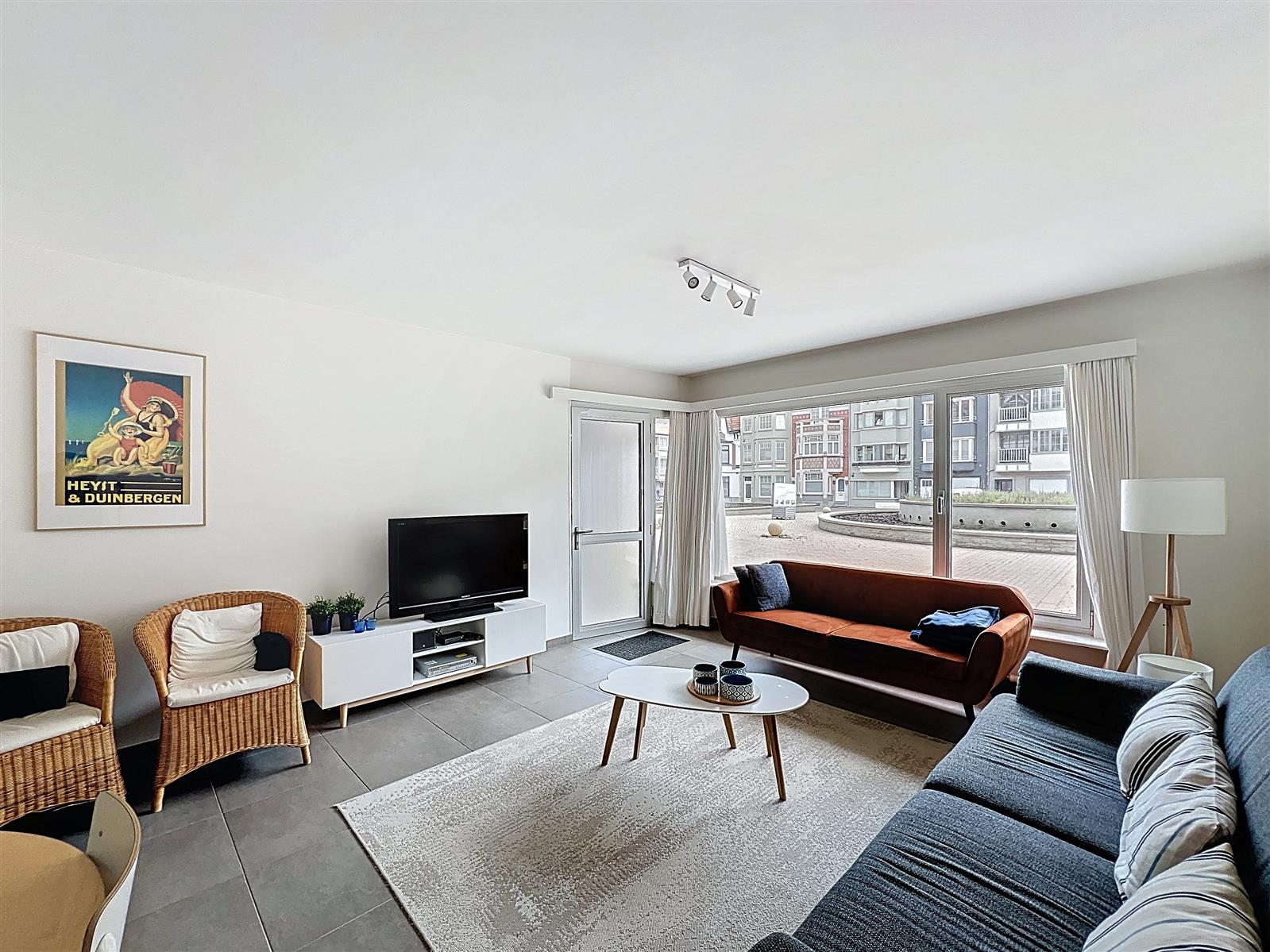 Appartement bestaande uit: living - ingerichte keuken - wc - badkamer met douche, dubbele lavabo en wc - twee slaapkamers, beide uitgevend op een binnenterras.