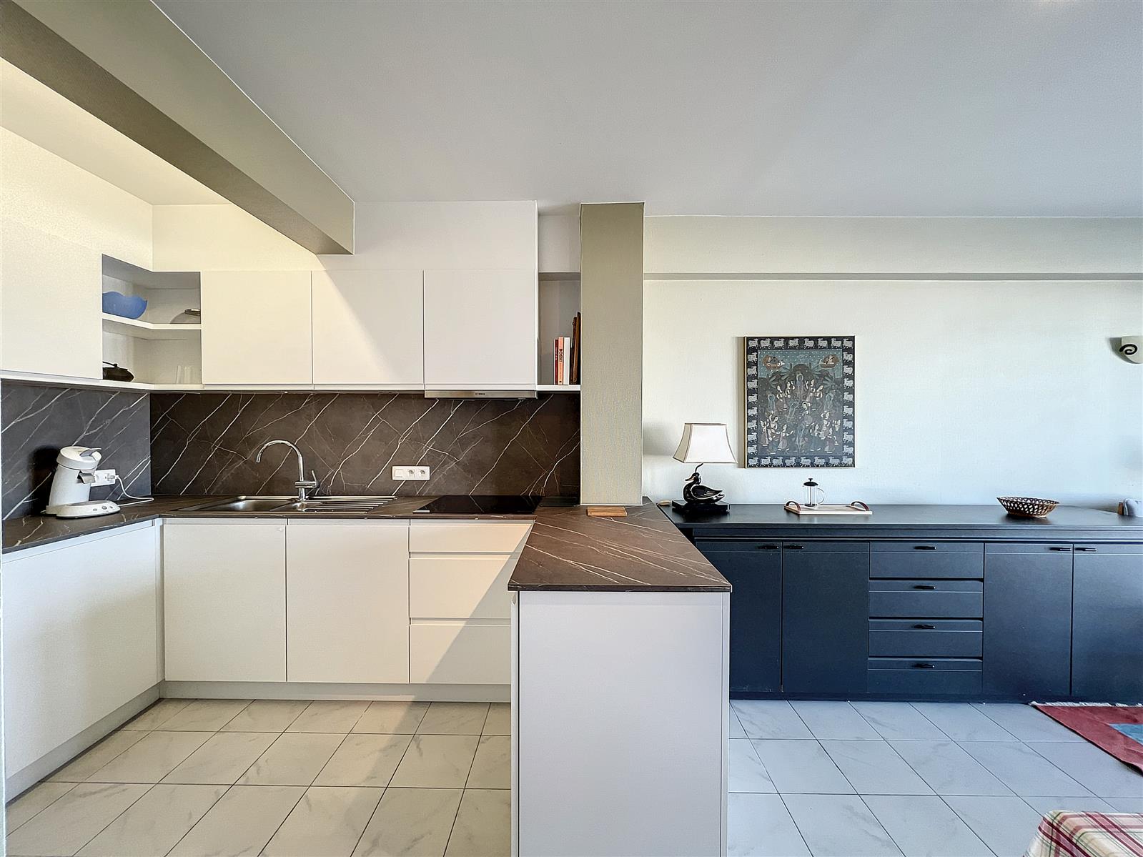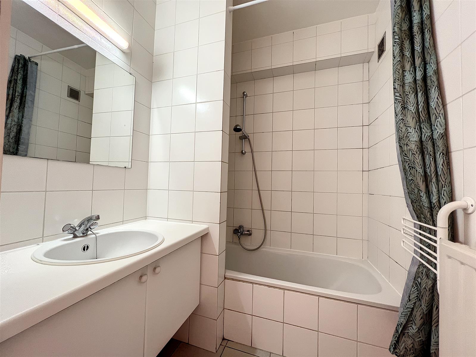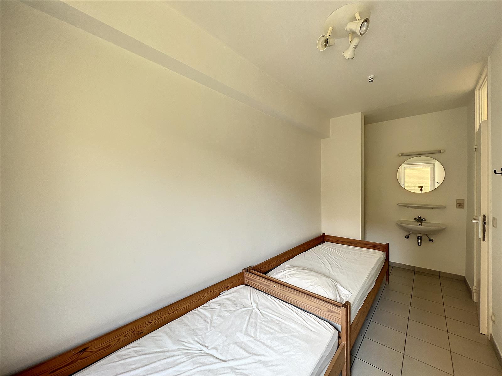 Het appartement bestaat uit: woonkamer – open keuken – badkamer met ligbad en lavabo – toilet – twee slaapkamers – slaaphoek – terras aan de achterzijde.