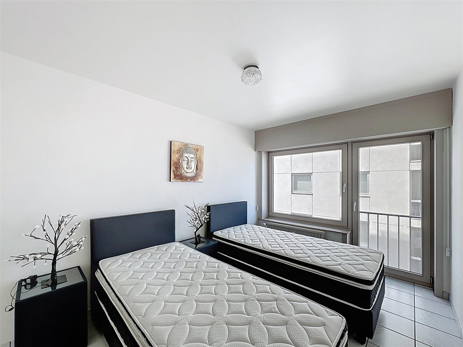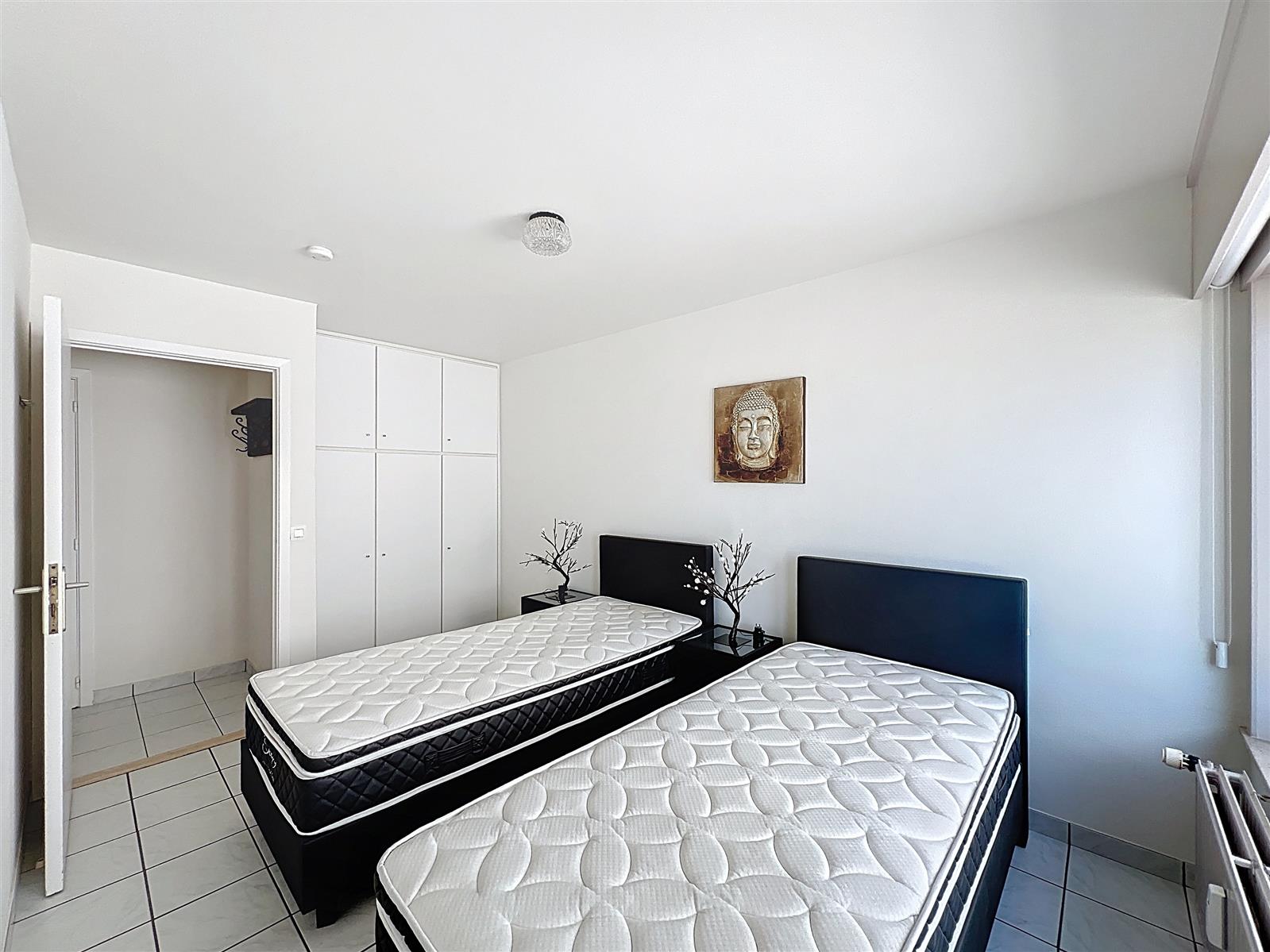 Appartement bestaande uit living - keuken - badkamer met ligbad en lavabo - wc - twee slaapkamers.