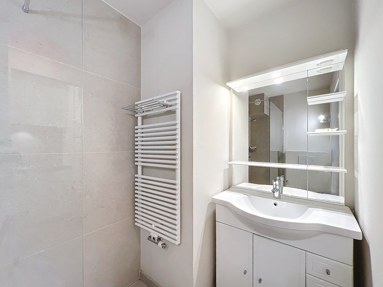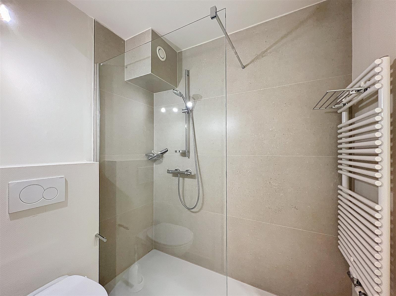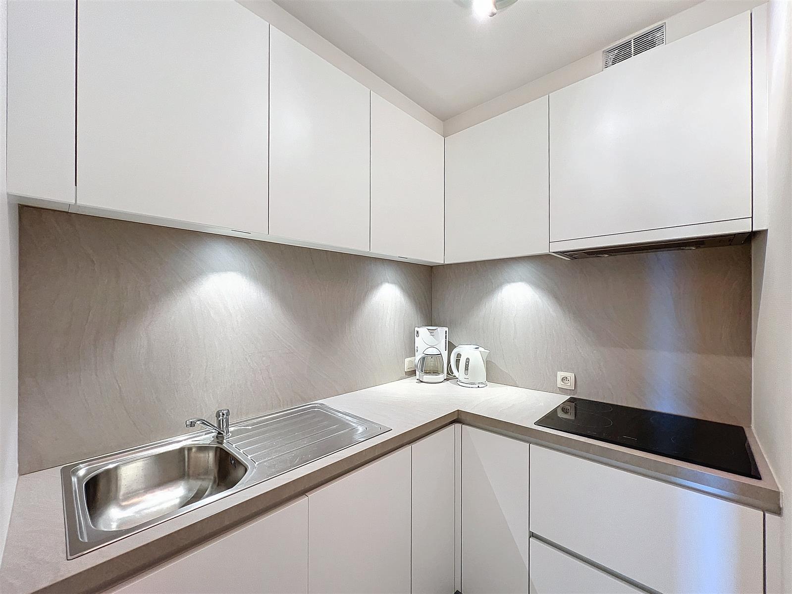 De studio bestaat uit: een living met toegang tot een klein terras - een keuken - een badkamer met inloopdouche, lavabo en wc.