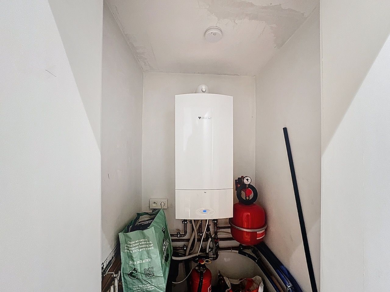 Vanuit de keuken heeft u directe toegang tot bergruimte/wasplaats en het overdekte terras met de knusse tuin. Daarnaast is er op het gelijkvloers nog een apart toilet, vestiairehoek en een toegang tot een praktische kelder.