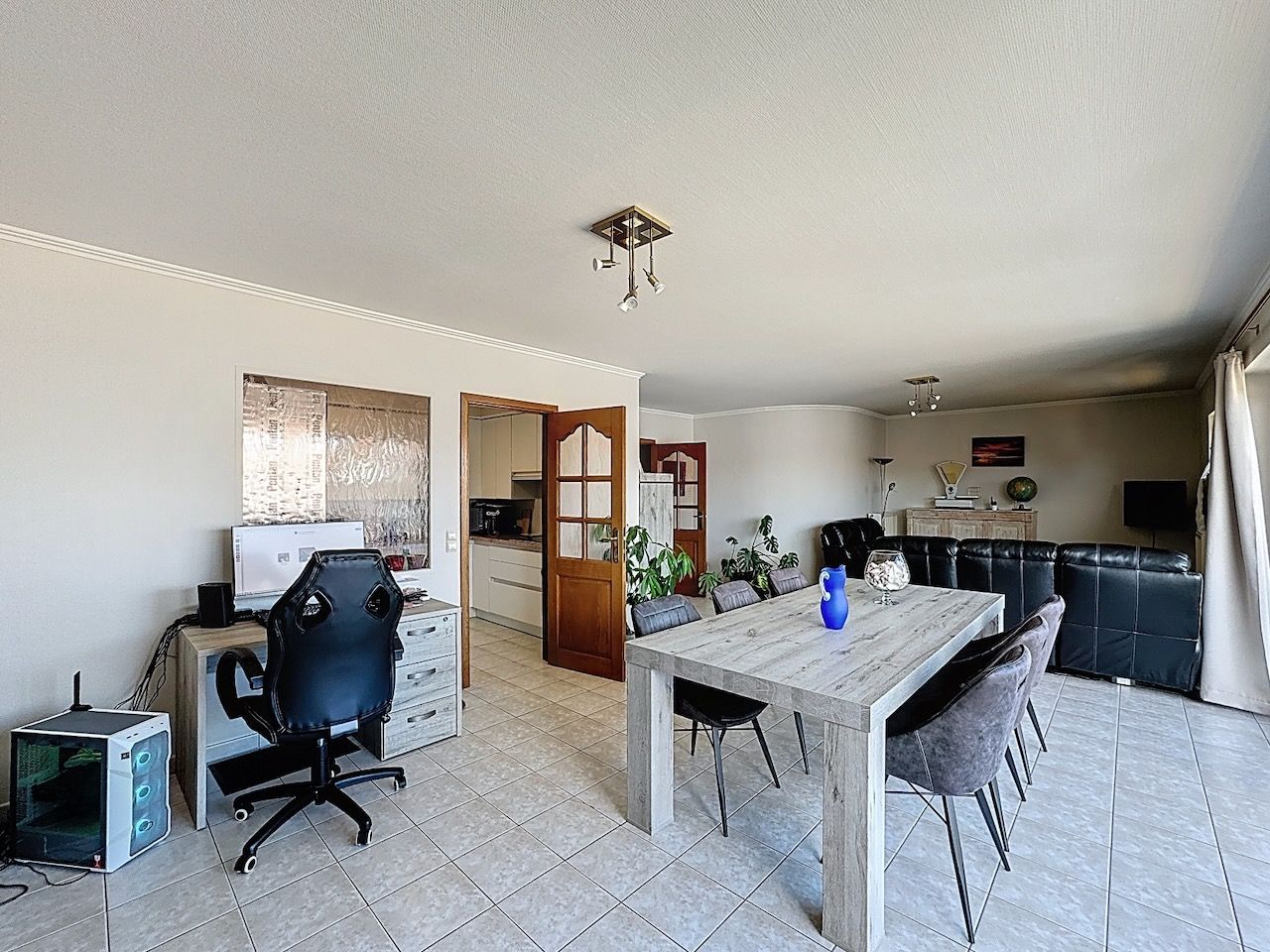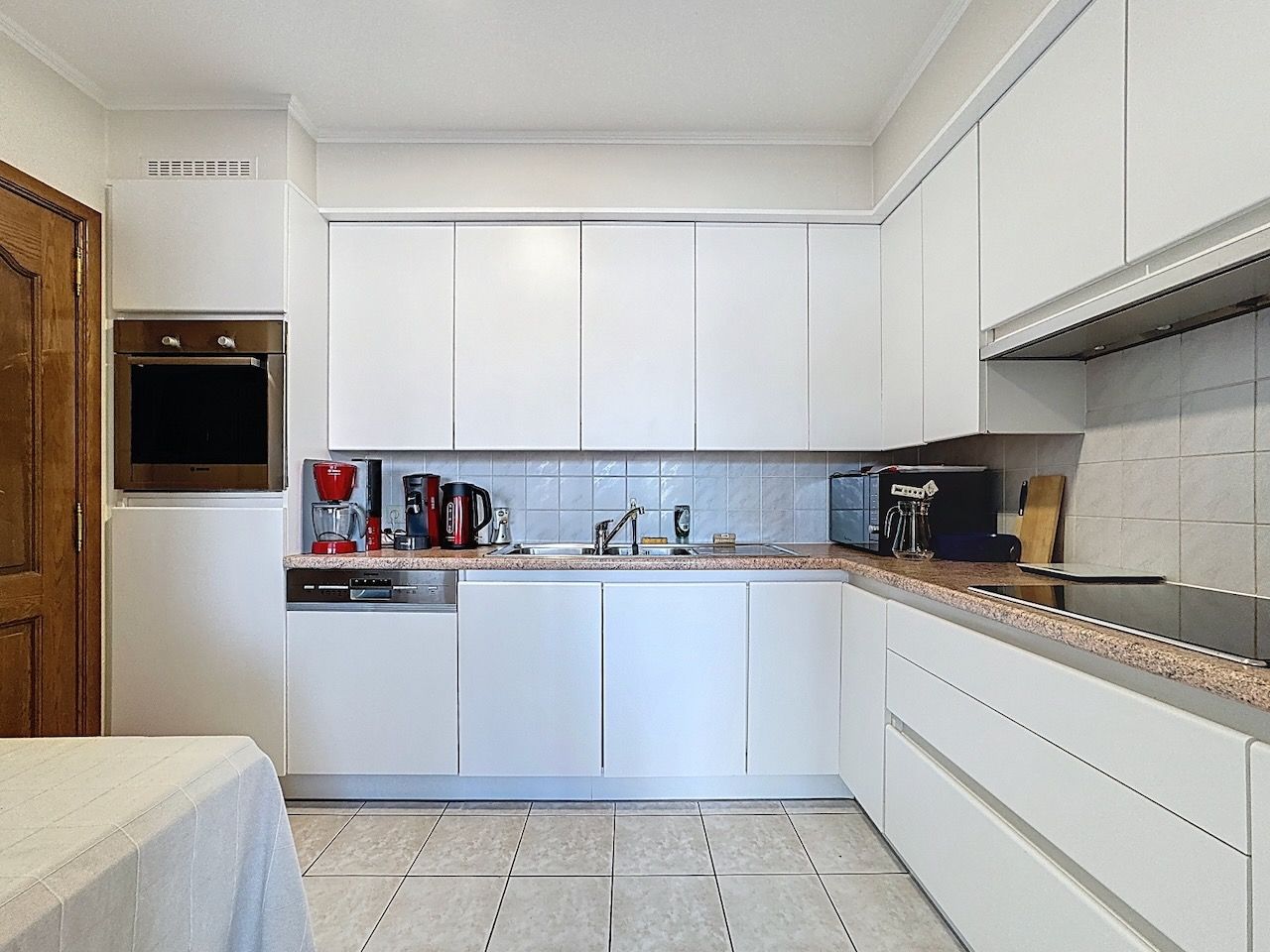 Aansluitend bevindt zich de volledig ingerichte keuken, voorzien van alle nodige toestellen, met directe toegang tot een handige berging met aansluiting voor wasmachine. In de inkomhal vind je een praktische vestiairekast en een apart gastentoilet.