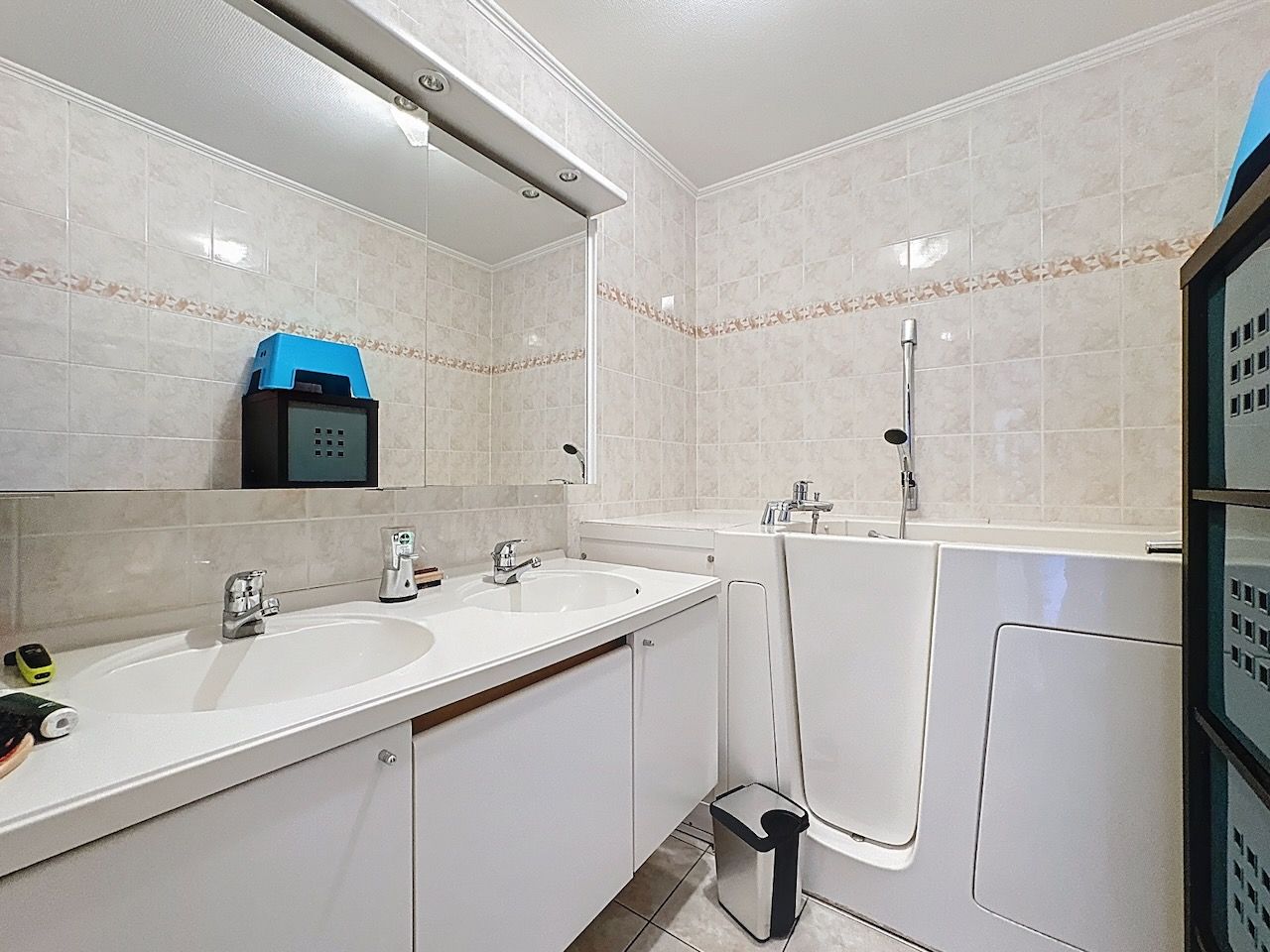 De drie ruime slaapkamers geven elk uit op een westelijk gericht terras waar je volop profiteert van de avondzon met open zicht richting 'Hoog Licht'. Het appartement beschikt over een comfortabele badkamer met zitbad en dubbele lavabo, en daarnaast is er ook een aparte douchekamer met douche en lavabo, wat het comfort verhoogt voor grotere gezinnen of gasten.